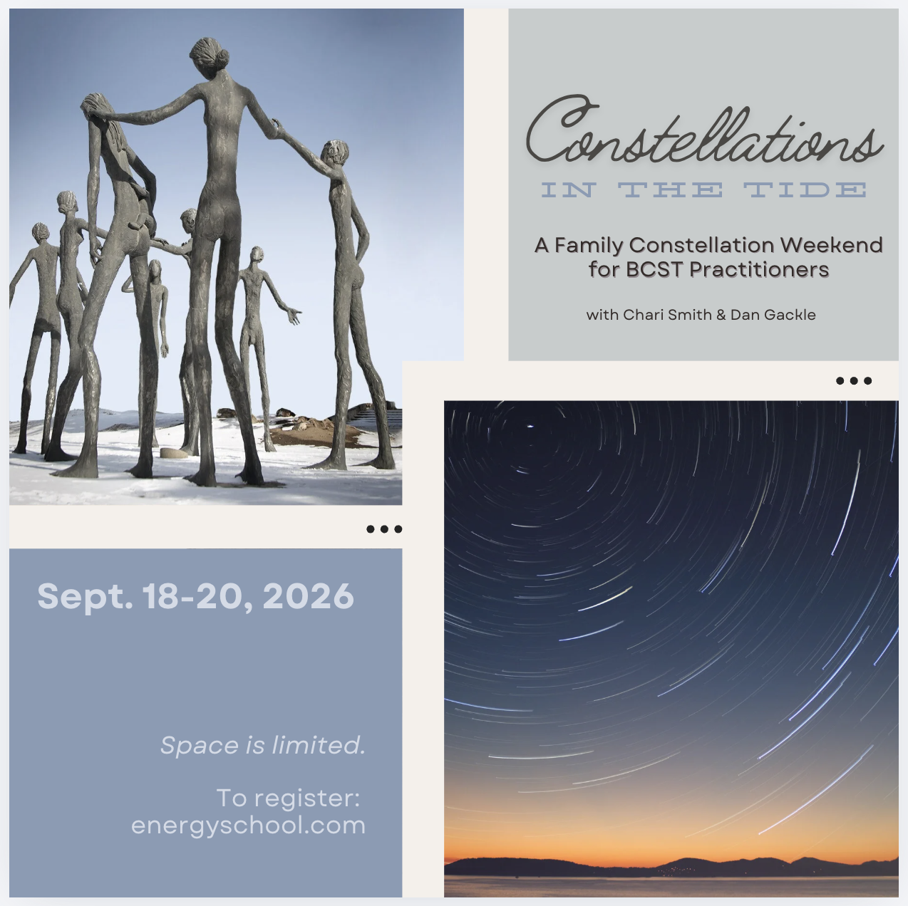A constellation is a like a cranial session but on a larger system than one body. It uncovers the disruptions and imprints that prevent someone from being fully alive. It’s a discipline of listening to the field, so anyone trained is BCST will be well-tuned to do this work. This workshop is limited to BCST Practitioners to explore the possibilities of crossing therapeutic mediums with participants skilled in somatic sensing and skills of presence.